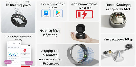 Παρακολουθήστε το πρόγραμμα ύπνου και τις δραστηριότητές σας με αυτό το κομψό και άνετο έξυπνο δαχτυλίδι και αποκτήστε πιο υγιεινές καθημερινές συνήθειες.