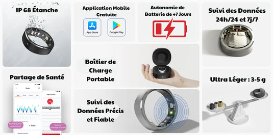 Suivez votre rythme de sommeil, vos activités et adoptez des habitudes quotidiennes plus saines avec cette bague intelligente élégante et confortable.