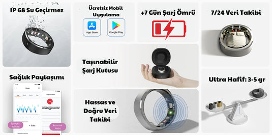 Bu şık ve konforlu akıllı yüzük ile uyku düzeninizi, aktivitelerinizi takip edin ve daha sağlıklı günlük alışkanlıklar kazanın.